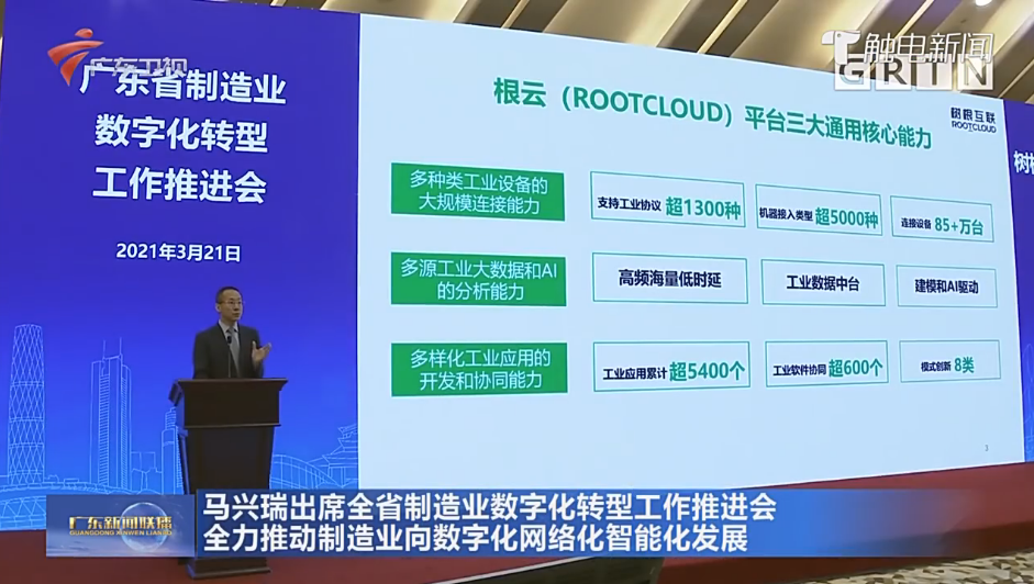 會上,作為國家級跨行業(yè)跨領(lǐng)域工業(yè)互聯(lián)網(wǎng)平臺企業(yè)代表,樹根科技聯(lián)合創(chuàng)始人、CEO賀東東展示了樹根科技在專注打造工業(yè)操作系統(tǒng)上取得的成績,重點(diǎn)介紹了根云(ROOTCLOUD)平臺三大通用核心能力,即多種類工業(yè)設(shè)備的大規(guī)模連接能力、多源工業(yè)大數(shù)據(jù)和AI的分析能力、多樣化工業(yè)應(yīng)用的開發(fā)和協(xié)同能力,打造跨行業(yè)跨領(lǐng)域工業(yè)互聯(lián)網(wǎng)應(yīng)用。