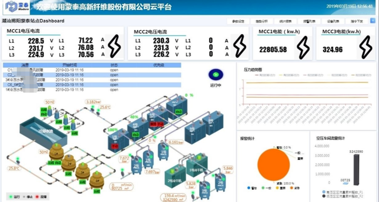 為了實現(xiàn)整廠最優(yōu)化的節(jié)能效果,2018年12月,廣東蒙泰與樹根科技及其生態(tài)伙伴廣東盈迅達成合作,采用了樹根科技的工業(yè)互聯(lián)網(wǎng)解決方案,通過精準檢測設備運行狀態(tài),并基于根云工業(yè)互聯(lián)網(wǎng)平臺構建能鏈大數(shù)據(jù)管理,實現(xiàn)數(shù)據(jù)全程的可視化和分析、實時與歷史數(shù)據(jù)對比、以及遠程監(jiān)控與報警,使得能源消耗一目了然,優(yōu)化、節(jié)能有理有據(jù)。