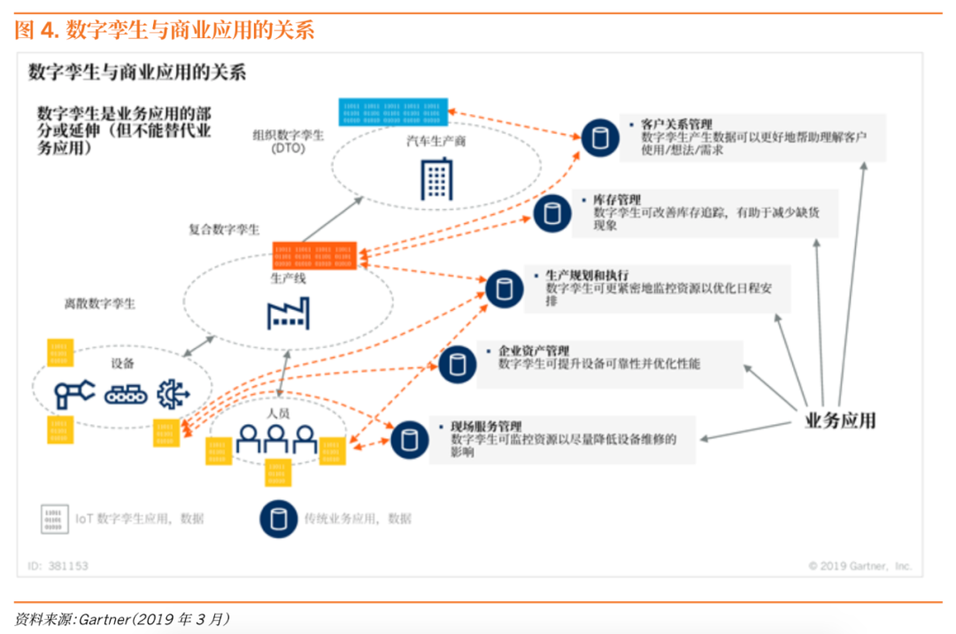 3.組織數字孿生:在特定的業務流程中最大化價值,比如在制造流程中,或在整個企業運作中。通常用于監控和優化高階企業層面結果。例如,根據不斷調整的上市戰略來優化整體制造能力,或者為公司所有利益相關者創造最大業務價值。