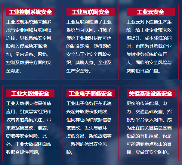 工業(yè)信息安全涉及工業(yè)領(lǐng)域各個環(huán)節(jié),一般而言,包括工業(yè)控制系統(tǒng)安全、工業(yè)互聯(lián)網(wǎng)安全、工業(yè)大數(shù)據(jù)安全、工業(yè)云安全、工業(yè)電子商務(wù)安全、關(guān)鍵信息基礎(chǔ)設(shè)施安全等內(nèi)容。