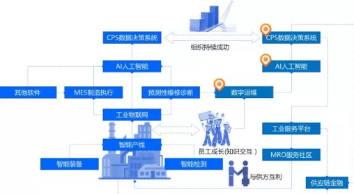 工業互聯網包含了智能制造為中心和以數字運維+工業服務為中心的CPS數據決策系統構成。前者要求工業企業具有一定的轉型能力,且同樣需要后者形成管理閉環和生態閉環。而后者是以數字運維(設備管理)為入口,適合為絕大多數工業企業提供有效的工業服務供給,同時幫助工業物聯網預測性維修診斷形成管理閉環,引導制造業逐步提升智能制造水平。