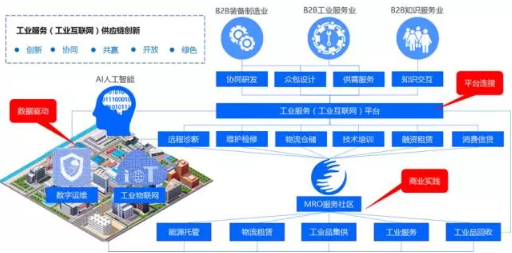 工業服務&工業互聯網實現工賦能工業包括:以數字運維+工業物聯網為基礎的AI人工智能,賦能工業企業實現轉型升級;以工業服務(工業互聯網)平臺連接B2B裝備制造業、B2B工業服務業,B2B知識服務,賦能B2B企業實現服務型制造轉型;以工業服務(工業互聯網)平臺形成從遠程診斷、維護檢修、物流倉儲、融資租賃、消費信貸等服務創新,通過MRO服務社區,賦能B2B企業實現供需匹配的商業模式落地。