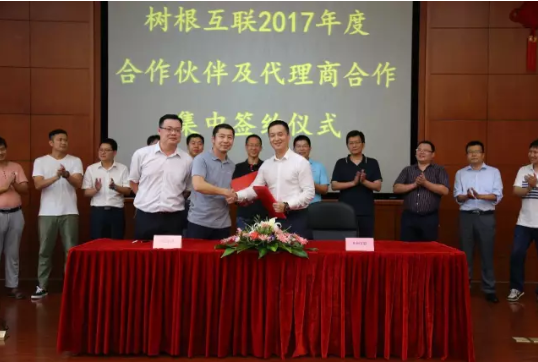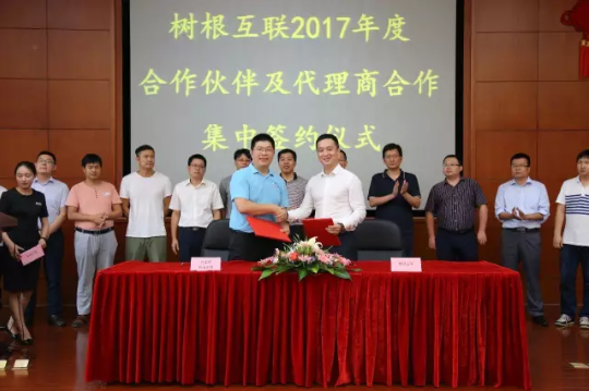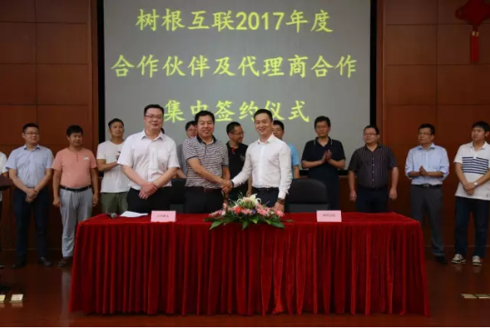下午,樹根科技與海匯科技、北京海博信達、湖北宏星天樞、湖南中聯惠眾、山東迅能電子、深圳賽遠、沈陽藍泰科瑞、四川川大智勝、四川建華科技、四川能信科技、四川中科智慧、蘇州云格、兄弟連品牌發展13家各地區的合作伙伴及代理商進行簽約儀式。
